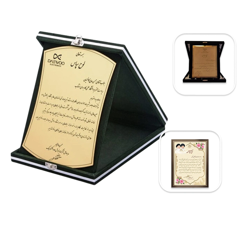 نوع ارائه: معمولاً داخل کاور مقوایی یا فولدر مخصوص لوح تقدیر قرار میگیرد تا جلوه شکیلتری پیدا کند.